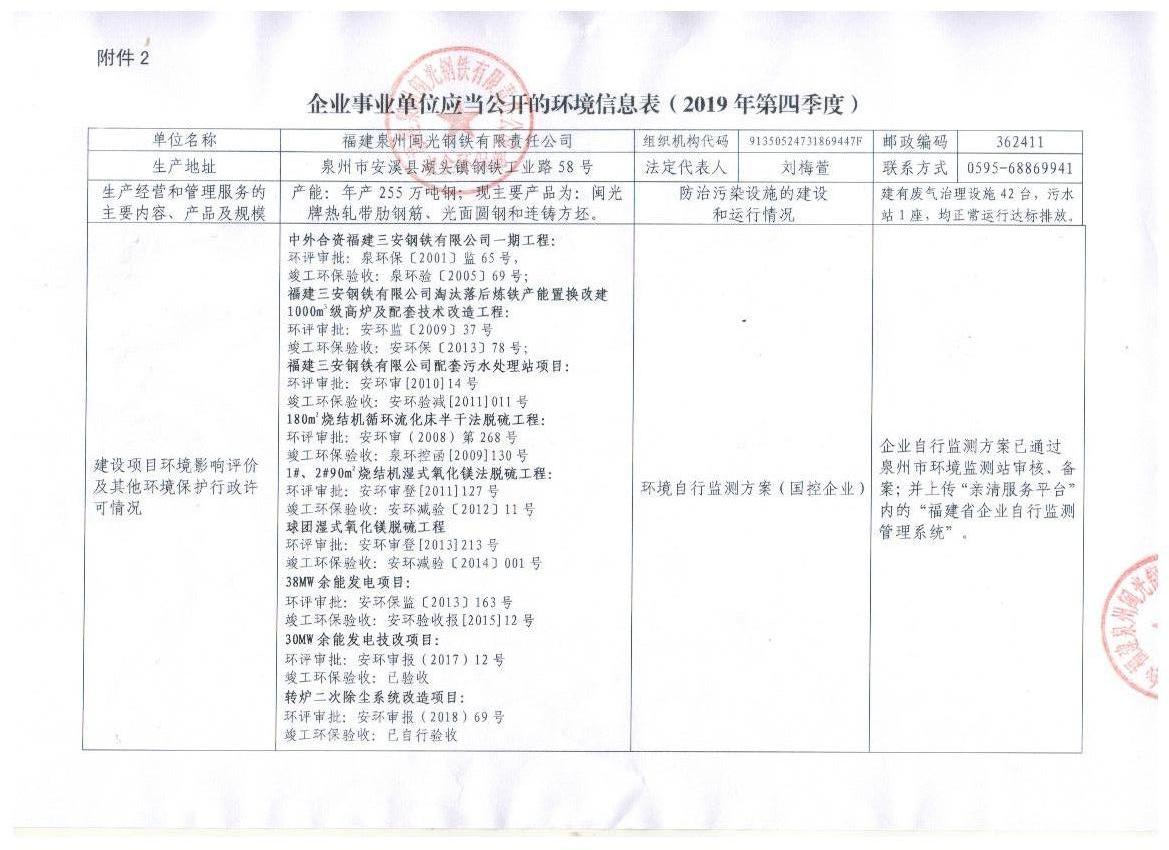 企業(yè)事業(yè)單位應(yīng)當(dāng)公開的環(huán)境信息表(2019年度第四季度)